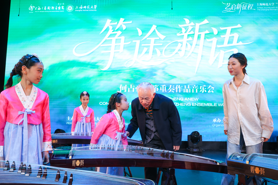 弦歌盈耳、筝韵流长。算作第41届上海之春外洋音乐节上师大艺术展示周的紧要表演,昨晚,“筝途新语”何占豪古筝重奏作品音乐会在上海师范大学音乐厅举行。93岁乐龄的作曲家何占豪来到现场,近百名演奏者以筝为媒,老中青少四代东谈主同台表演,用15首经典与新作交汇的旋律,书写民乐传承的动东谈主篇章。