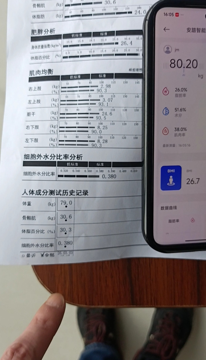 “ANTA”的体重秤测量成果流露,第又名记者体重78.95公斤,脂肪率25.2%;第二名记者体重64.8公斤,体脂率18.3%。