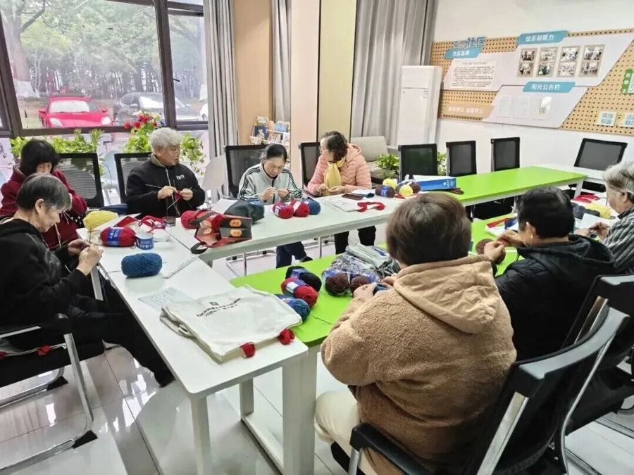 入冬以来,荣乐居民区的活动室里总能见到编织队阿姨们忙碌的身影。她们围坐在一起,手指翻飞、绒线穿梭,专注赶织防寒手套。选线讲究柔软亲肤、厚实保暖,款式要贴合手心、方便骑行,虎口处特意加厚耐磨,边缘还点缀着精致的蝴蝶结。从选线、定款,到试织改进,手套成形的每一针每一线里都藏着阿姨们的熨帖心意。
