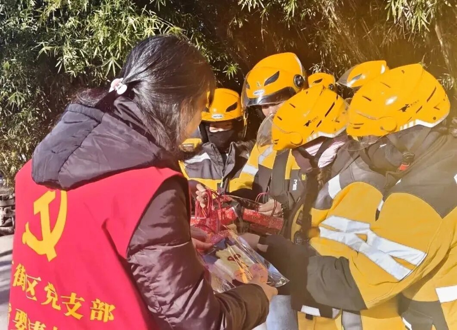 “这些骑手和我们自家孩子差不多大,冬天风这么冷,手最容易冻着,我们给他们织些手套吧。”刚入冬,阿姨们便敲定了主意,立刻动手赶工。经过十余天的精心编织,60副毛茸茸的手套顺利完工。最终,这份朴素又赤诚的礼物,经荣乐居民区联合岳阳广场综合网格转达,送到了骑手们手中。“颜色真好看!”“戴起来又暖又软,太实用了!”现场,骑手们惊喜地围拢挑选,戴上暖绒绒的手套,冻得发红的脸颊上漾开了灿烂的笑容。