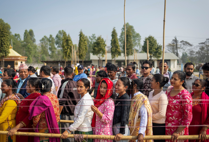 东说念主们在尼泊尔达马克的一处投票站列队等候干涉投票。\n 新华社/路透