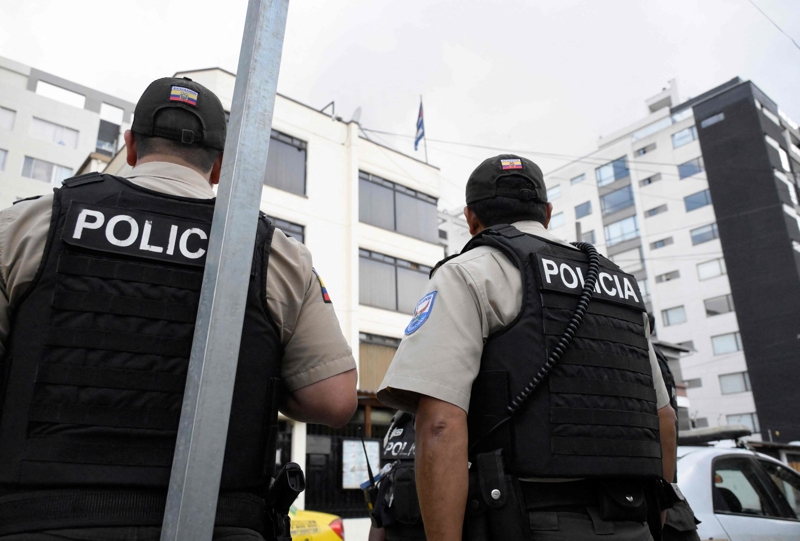 在厄瓜多尔都门基多,窥伺在古巴驻该国大使馆外握勤。\n 新华社/法新