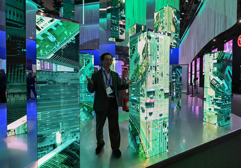在西班牙巴塞罗那举行的2026年全国转移通讯大会上,别称参不雅者在展厅留影。\n 新华社记者 程敏 摄