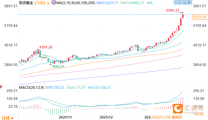 北京时间1月29日11:17 现货黄金 报 5534.56 美元/盎司