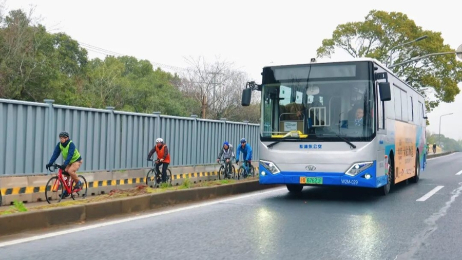 在这场骑行队伍后方,一辆流程终点周折的定制公交车慢慢跟班,成为骑行者的“转移保险站”。这是上海依托市级定制公走运营管事平台,初次试点开行的DZ骑行1线,以定制公交模式管事体裁动作场景的新尝试。
