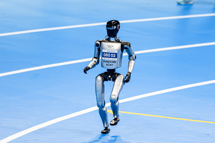 魔法原子MagicBot Z1参加首届世界东谈主形机器东谈主清醒会。 受访者供图