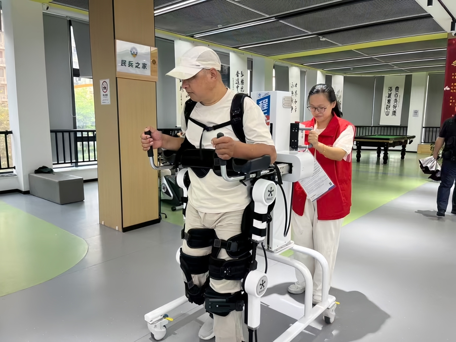 半年前因巧合瘫痪后,沈大伯的居家康复进展有限。自从社区引入程天科技的外骨骼机器东谈主,他就在这里运转系统磨真金不怕火。如今,他仍是不错拄入手杖孤立行走。
