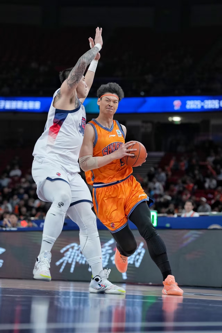 本场比赛,上海大鲨鱼派出了王哲林、张镇麟、李弘权和双外助古德温、洛夫顿的先发气势,开场后两队轮换得分战成8比9,尔后主队打出10比0的小热潮,以18比9跨越。首节洛夫顿出场8分钟送出5次助攻,主队以29比25跨越。