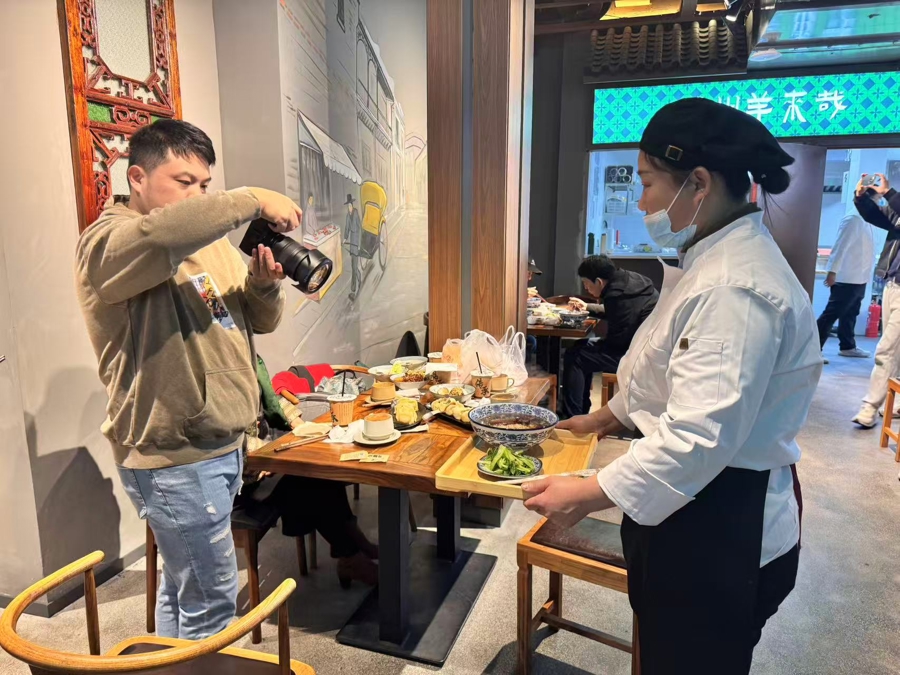 有门客带着单反相机专程前来,处事员联接“出片”。 文文告记者 单颖文摄