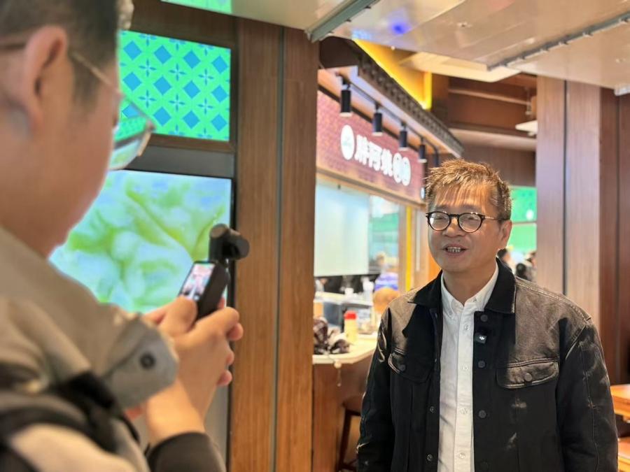 陈宇在市集内拍摄短视频,盘算推算上网引流。 文文告记者 单颖文摄